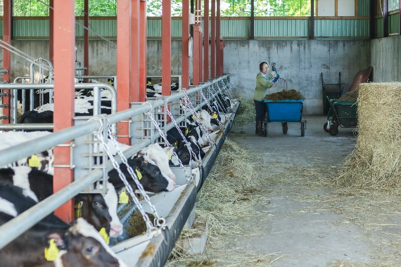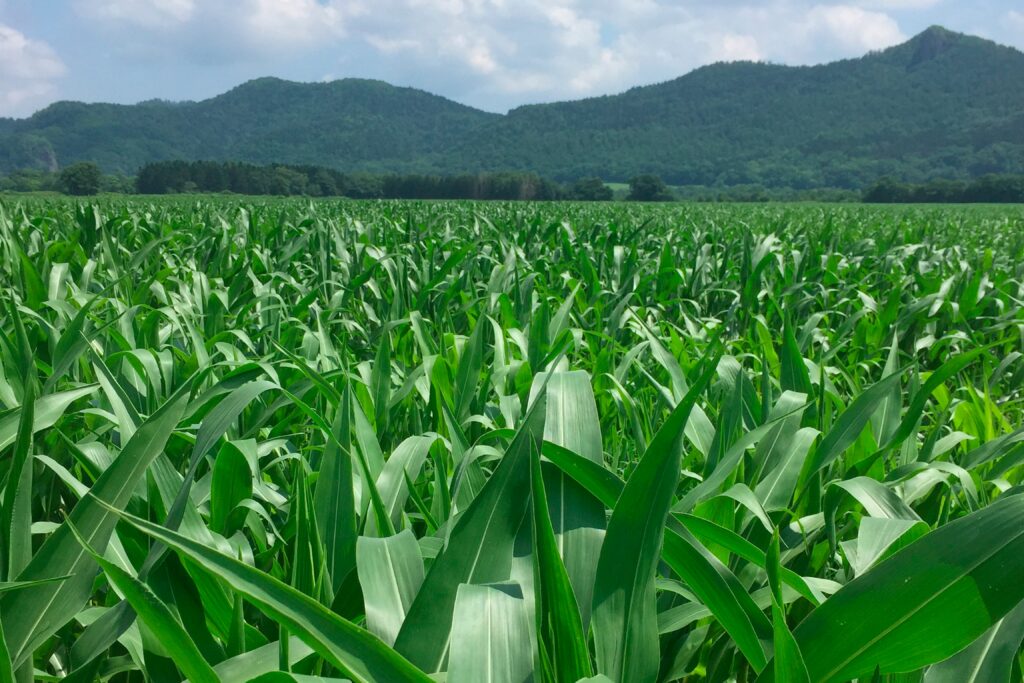 当牧場は、広大な滝上町の土地を最大限に活用し、飼料となるデントコーンと牧草を自社の畑で栽培しています。デントコーン畑は合計90ヘクタール、牧草地は合計480ヘクタールに及び、質の高い生乳を生産するための基盤となっています。