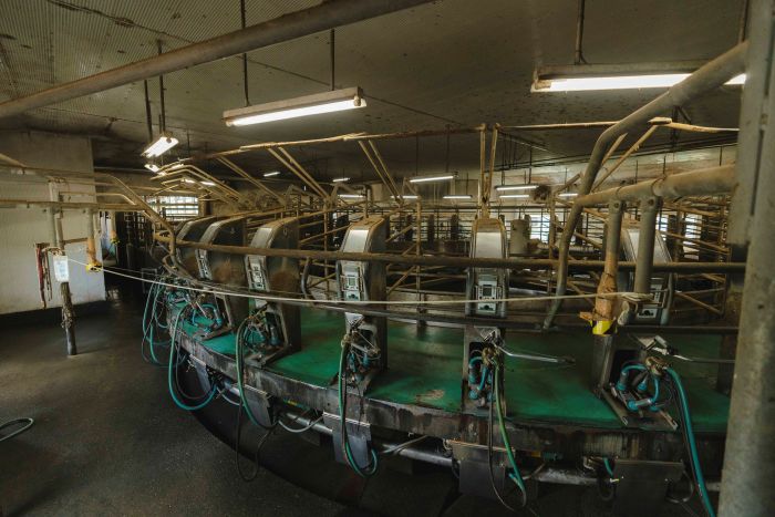 ロータリーパーラーは、回転式の搾乳設備で効率的に多頭数を搾乳できるのが特徴です。当牧場では40頭同時に入る設備を導入しており、定位置で作業が出来るため、作業者の移動が少なく快適に搾乳が出来ます。