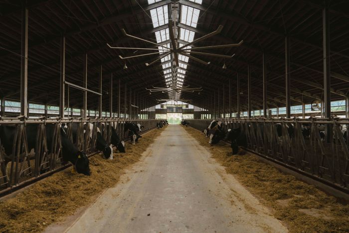 当牧場では、約500頭の親牛をフリーストール牛舎で飼育しています。牛たちは自由に動き回り、好きな時にエサを食べたり、好きなベッドで休んだりすることができます。ストレスを軽減し、牛がのびのびと快適に過ごせる環境を整えています。